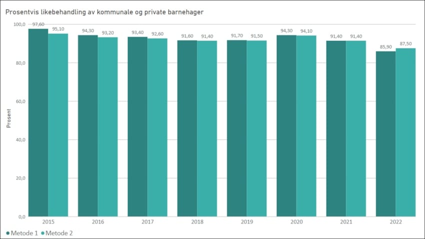 Nye tall: Private barnehager 87,5 prosent «likebehandlet»
