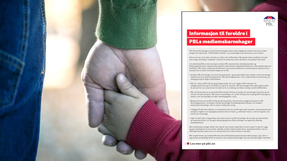 PBL har fått flere henvendelser fra medlemsbarnehager som ønsker å møte foreldre med mer nyansert informasjon om PBLs pensjonsordninger enn det inntrykket som fagforeningene etterlater under streiken.